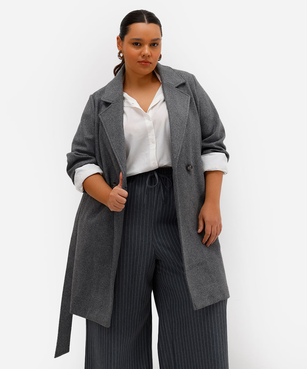 trench coat feminino texturizado plus size cinza