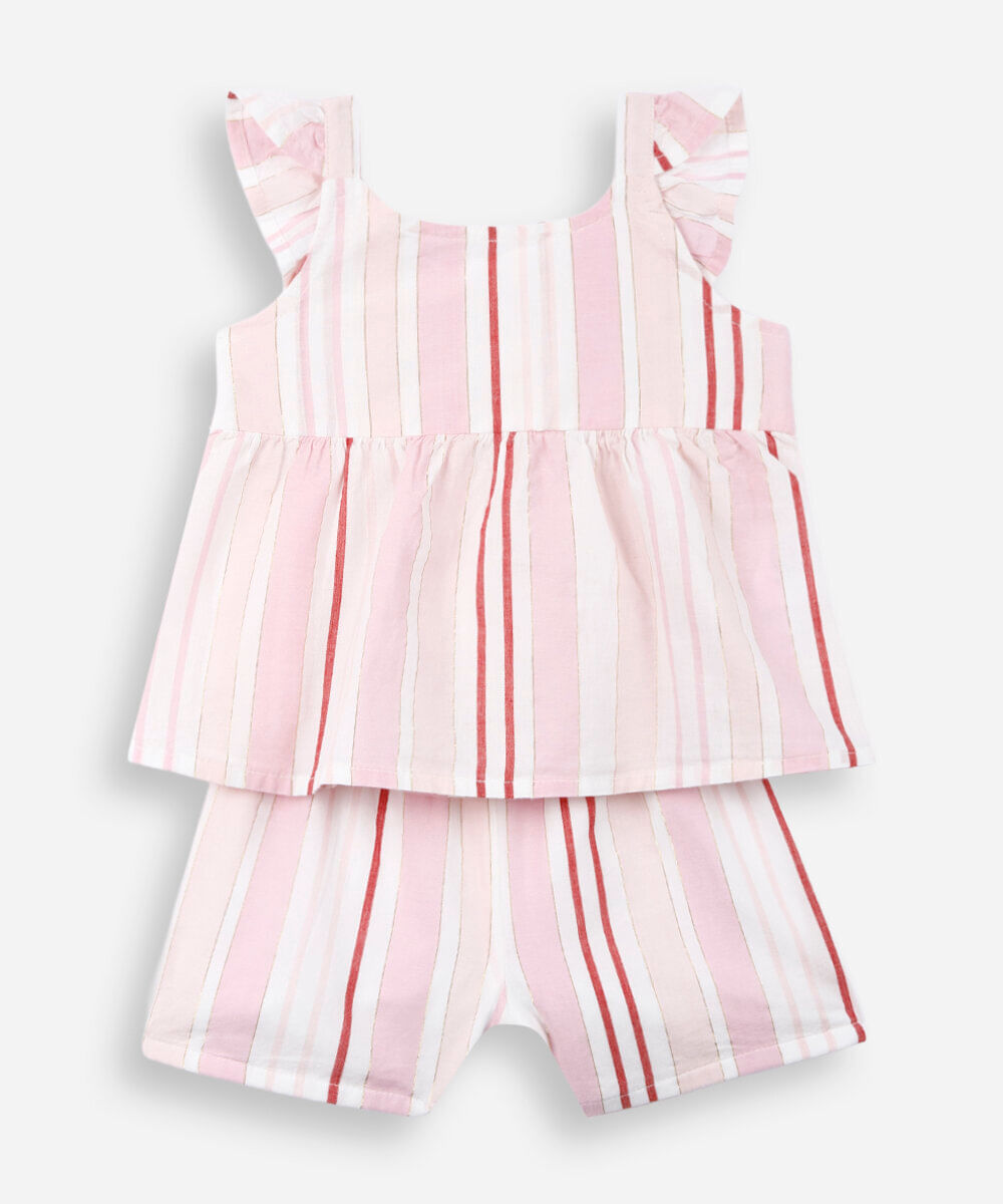 conjunto infantil de algodão lurex listrado rosa