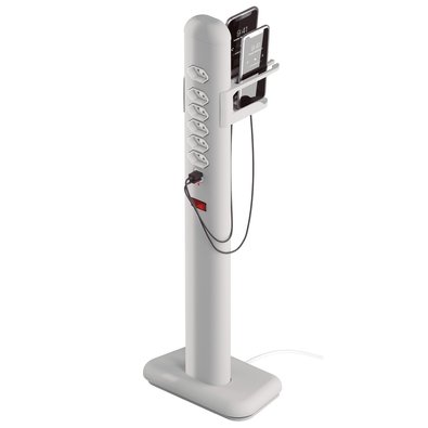 Totem Elétrico Easy Plug Octoo, Com 6 Tomadas + 01 USB e 01 USB-C, Ice Silver Com Suporte Para Smartphones - 10025