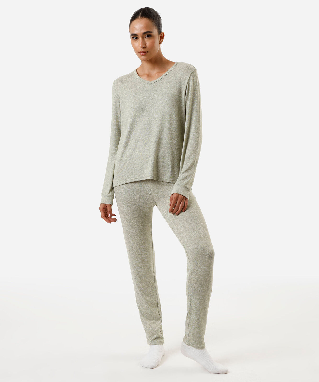 pijama de tricot manga longa verde