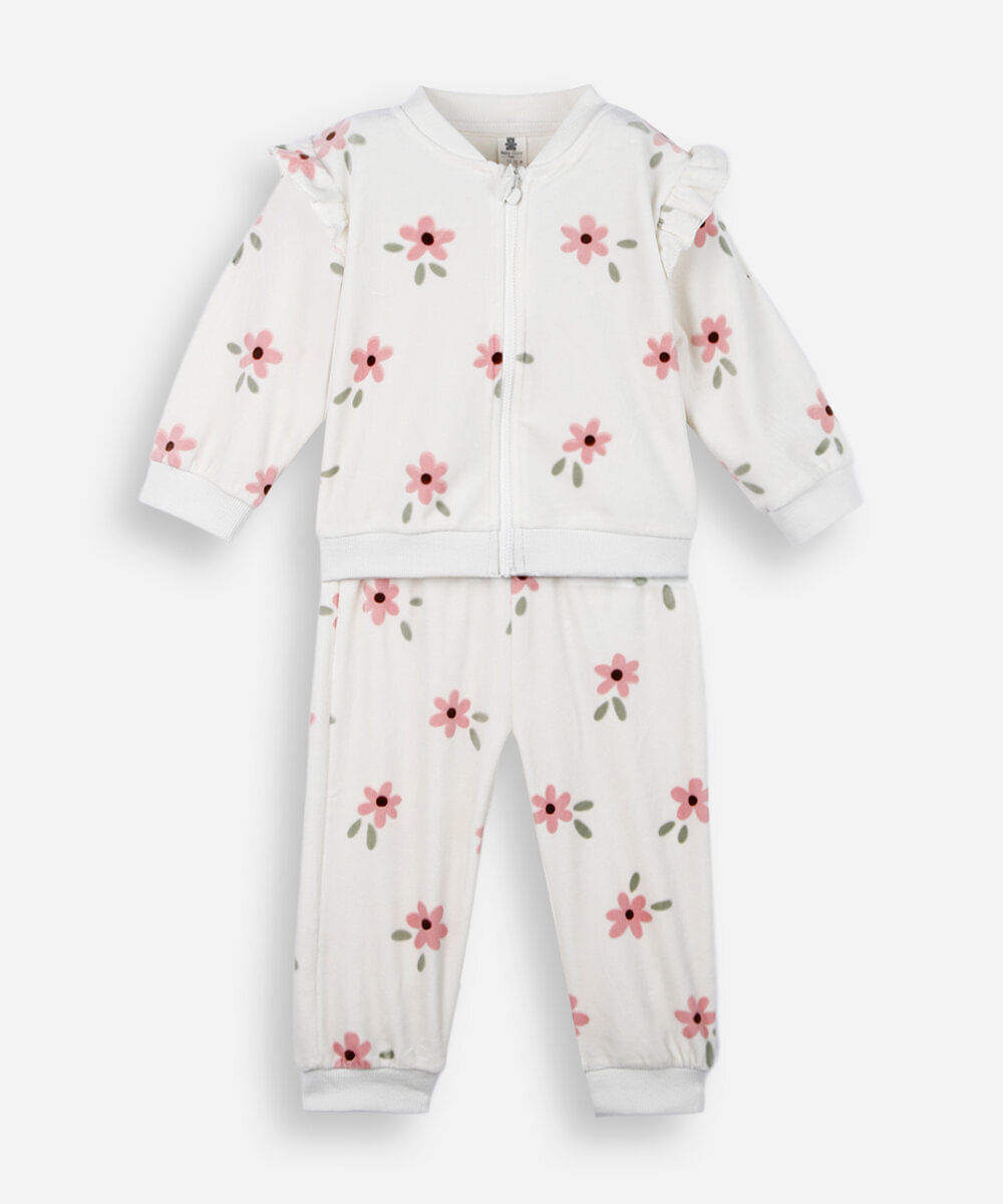 conjunto longo infantil de plush floral bege