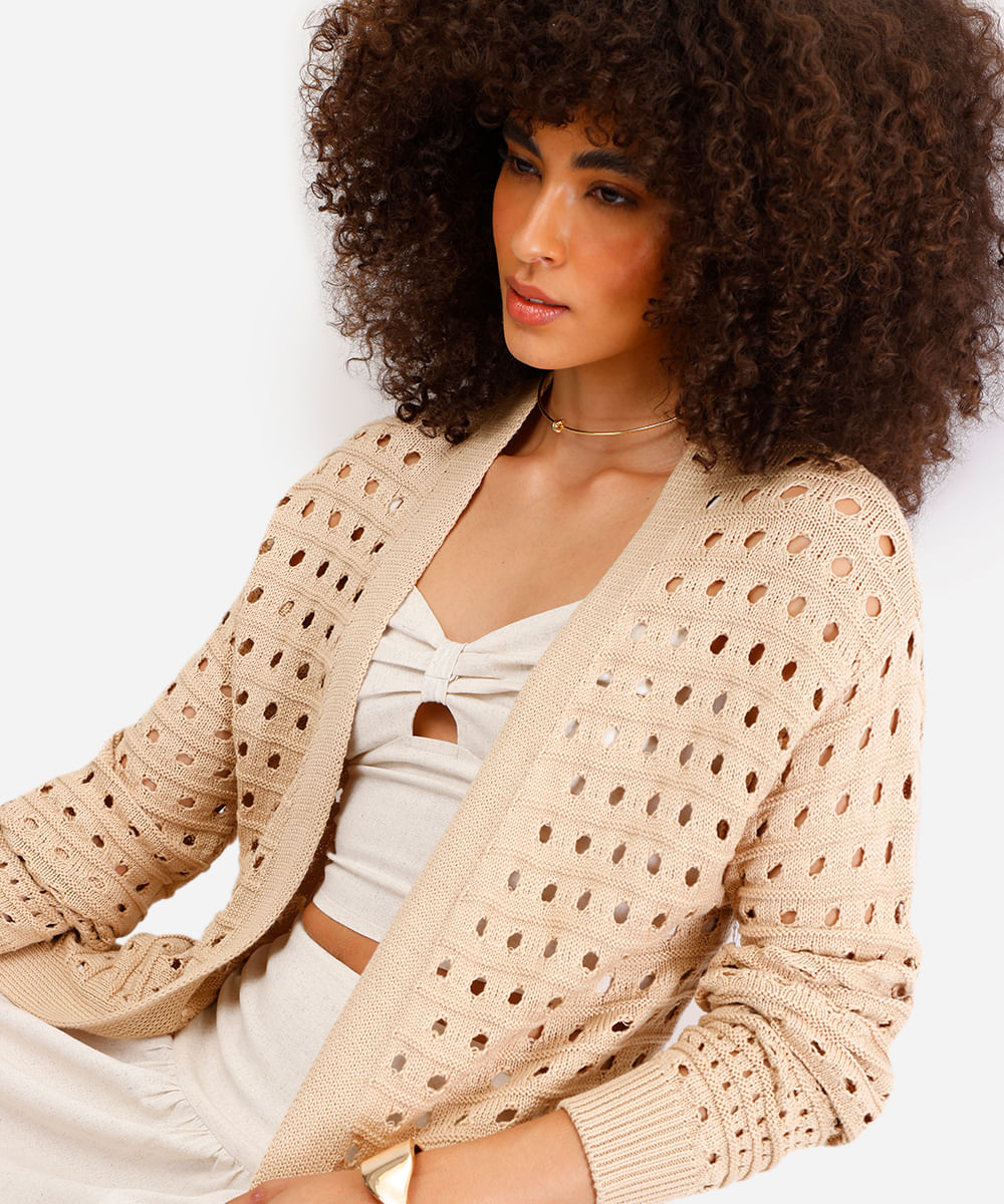 cardigan feminino alongado de tricot bege
