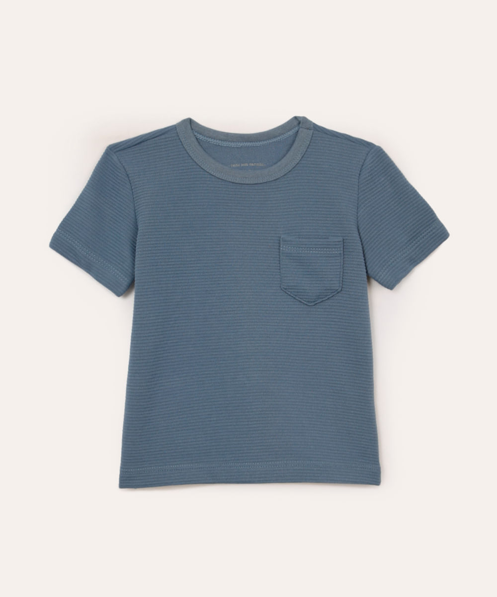 camiseta infantil texturizada com bolso manga curta azul