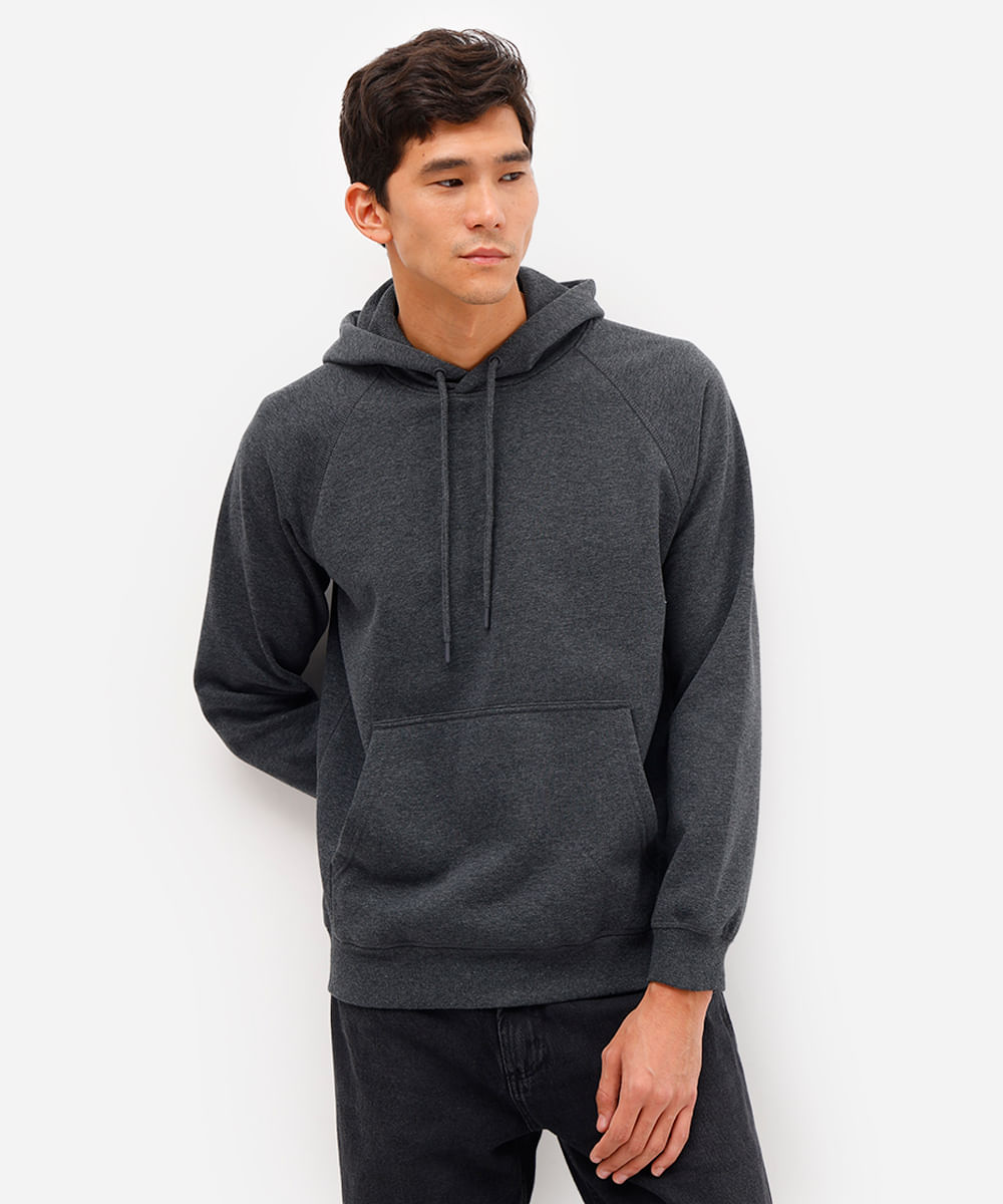 blusão básico masculino de moletom com capuz cinza