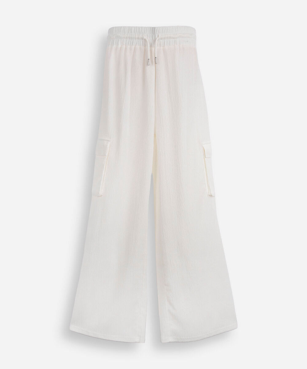 calça juvenil cargo wide leg off white