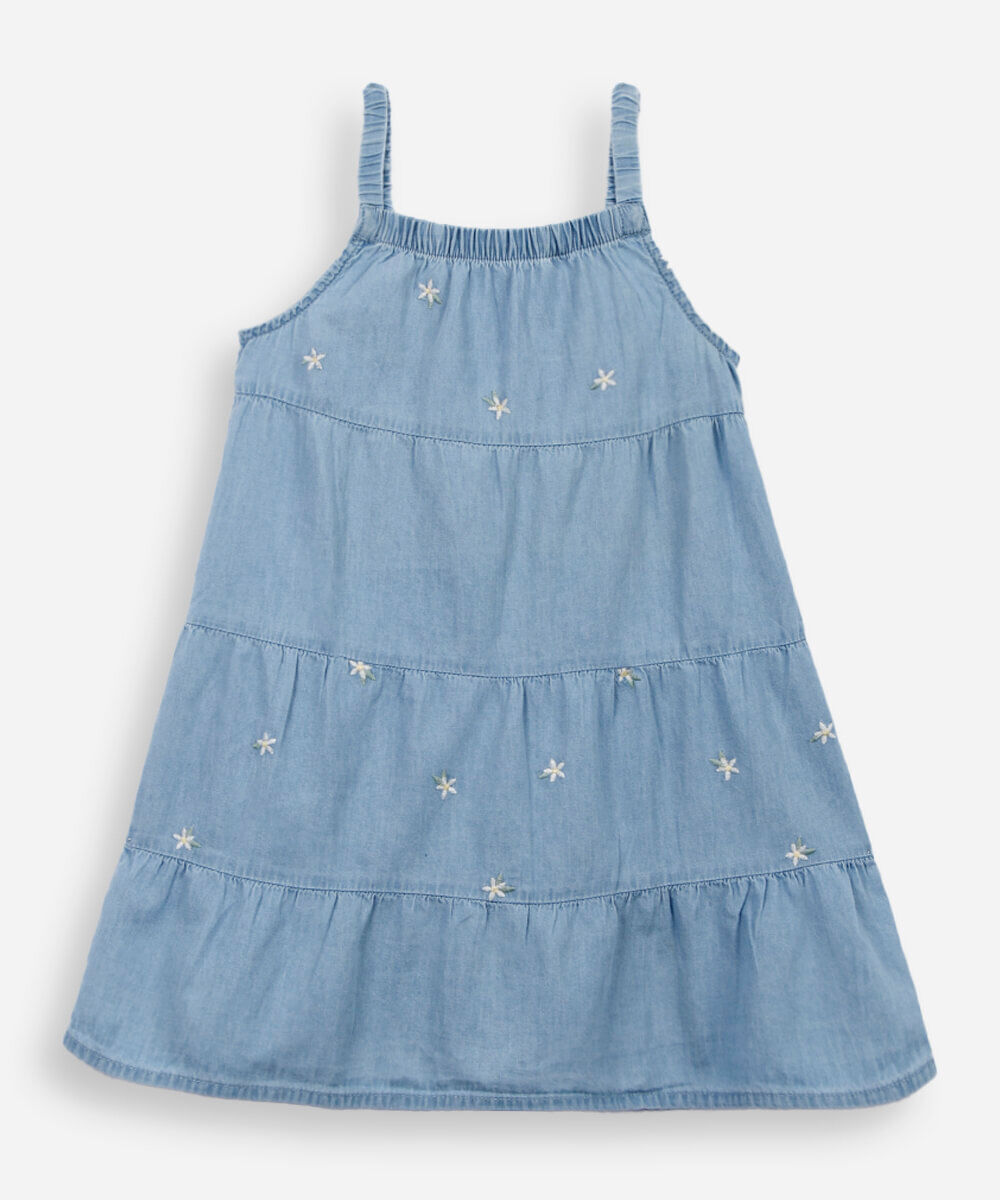 vestido infantil jeans bordados azul