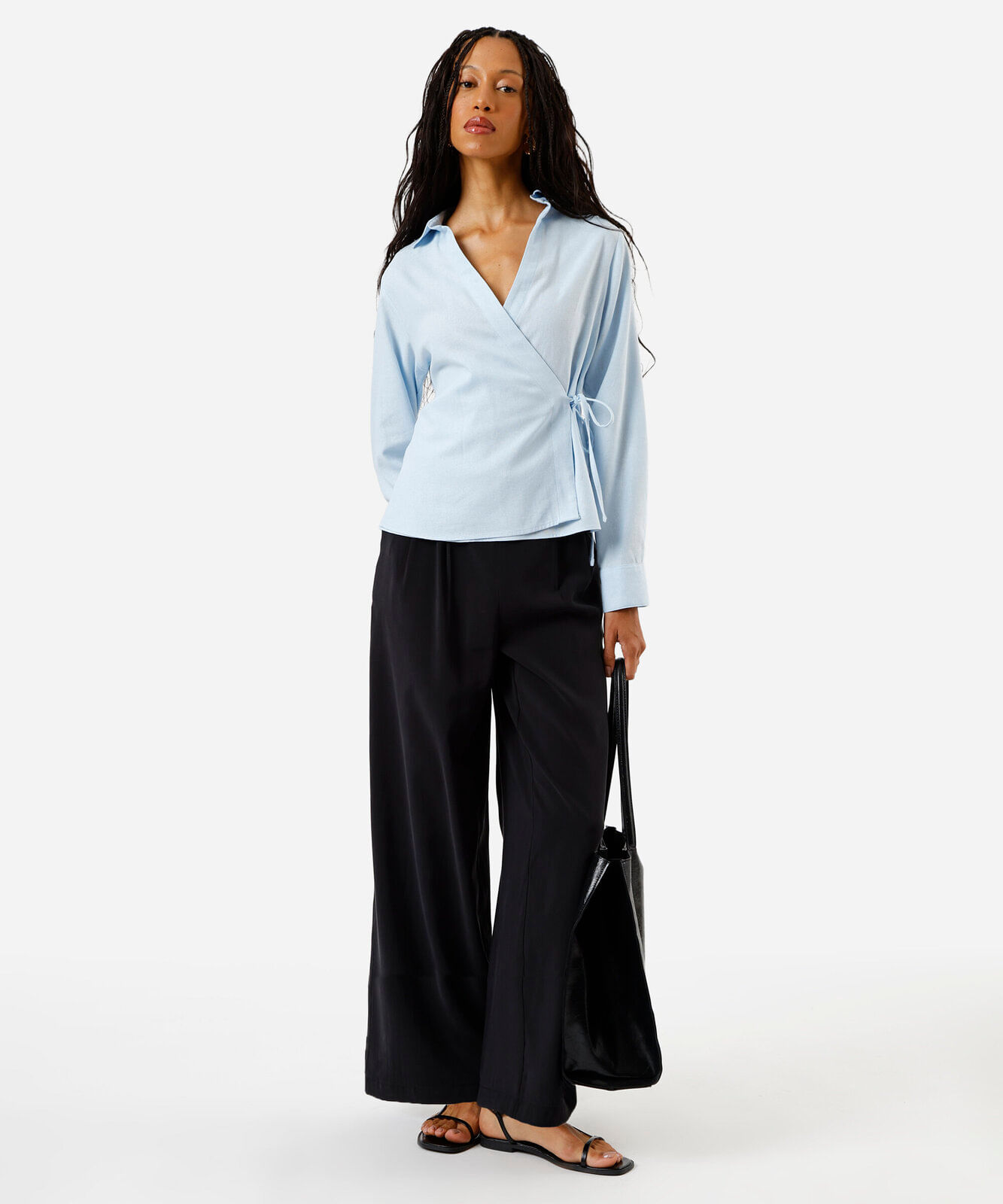 calça feminina wide em alfaiataria preta
