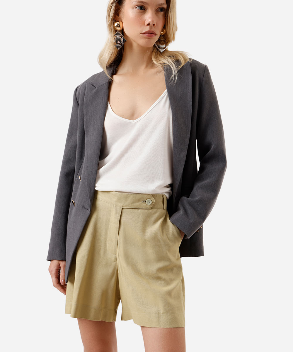bermuda feminina de alfaiataria com linho verde