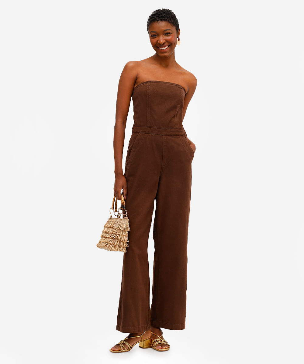 macacão sem alça feminino de sarja marrom