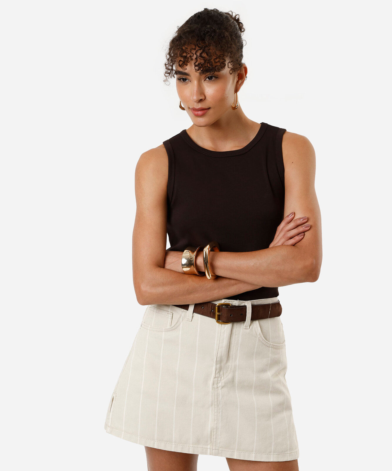 bermuda cargo de sarja com cinto marrom
