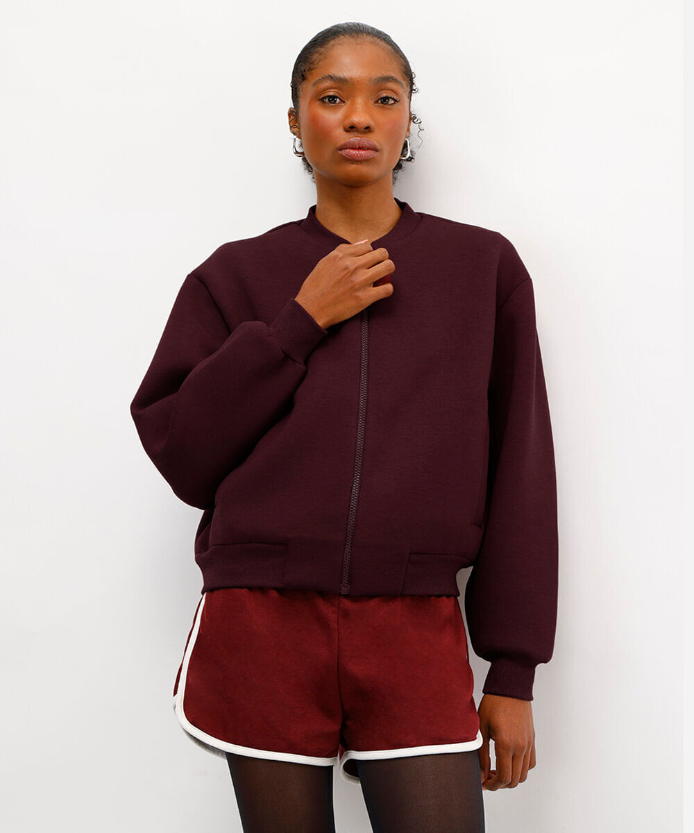 jaqueta bomber feminina de neoprene - vinho