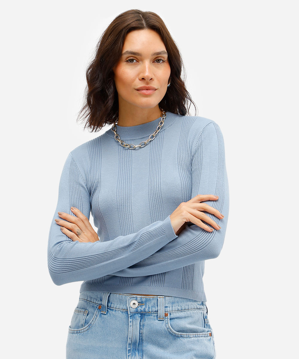 suéter básico de tricot canelado - azul jeans