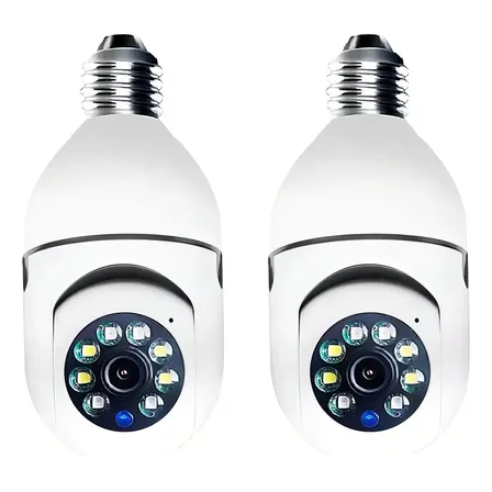 Kit 2 Câmeras Segurança 360º Jortan Wifi Ip Hd Visão Noturna Lâmpada Camera Lâmpada Wifi 360