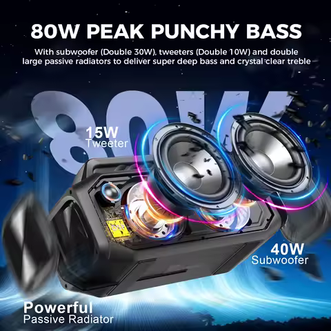 Alto-falante sem fio bluetooth portátil W-KING bt261, 80w, ipx6 à prova d'água alto com reforço de graves, emparelhamento estéreo, carregamento reverso/nfc