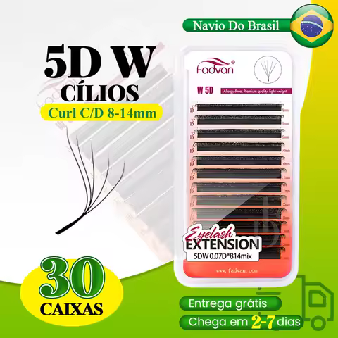 FADVAN Cílios 5D 30 Peças Frete Grátis do Brasil Curvatura D Formato W Extensões de Cílios Fans de Volume Pré-fabricados Ferramentas de Maquiagem para Cílios