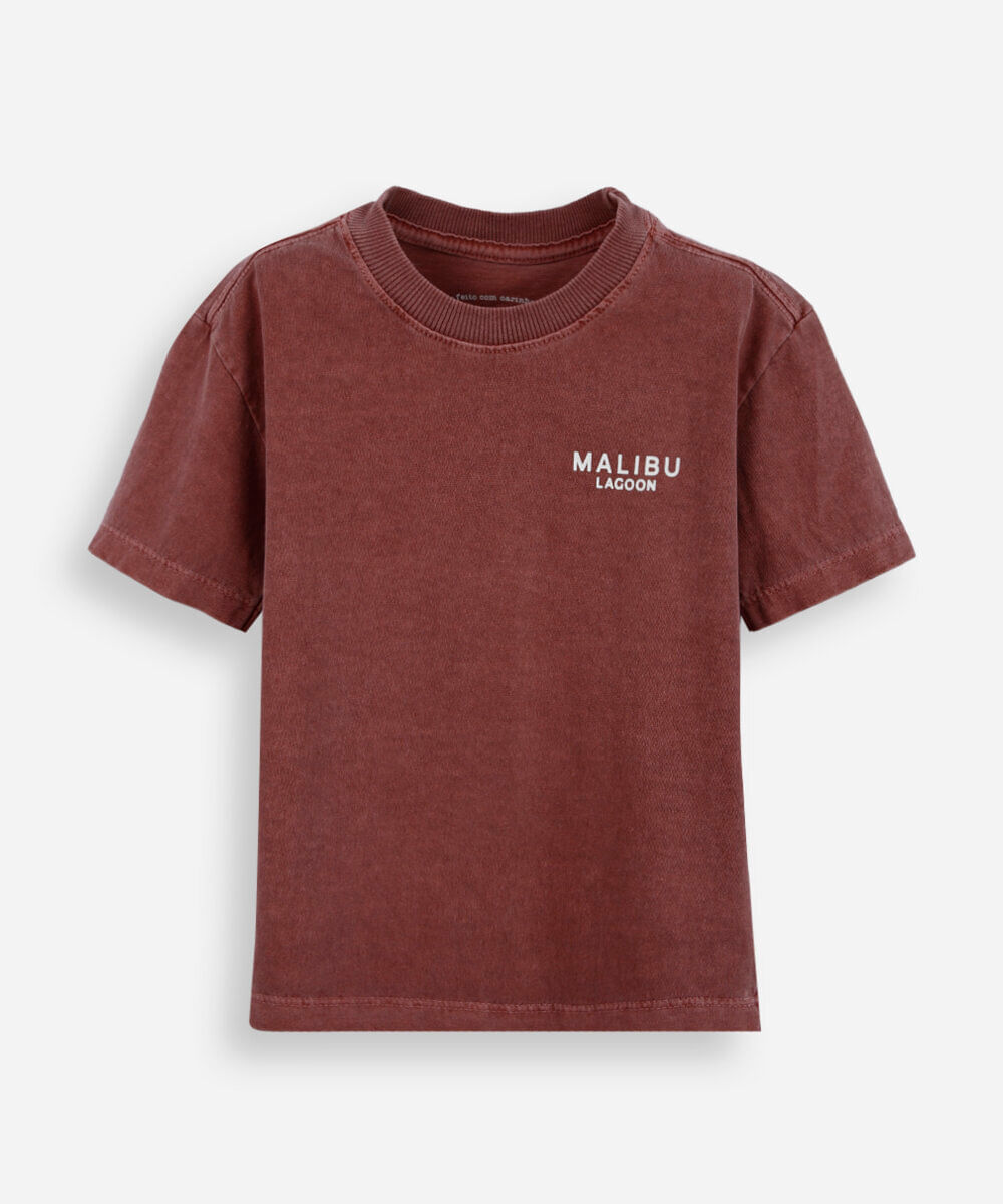 camiseta infantil de algodão estampada estonada vinho