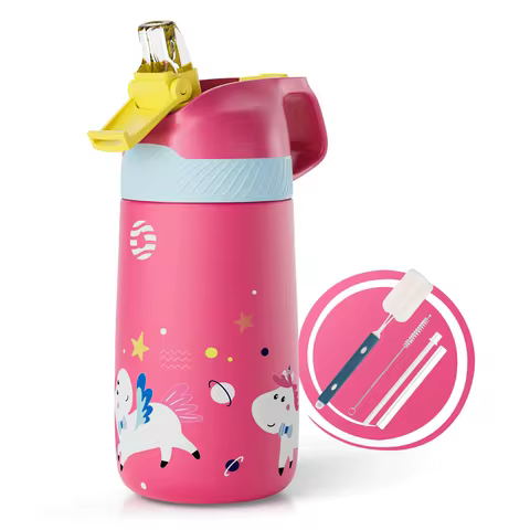 Garrafa Térmica Infantil FJbottle 350ML, Livre de BPA, com Canudo Saudável, Recipiente Isolado para Bebidas das Crianças, Conjunto com Escova de Limpeza