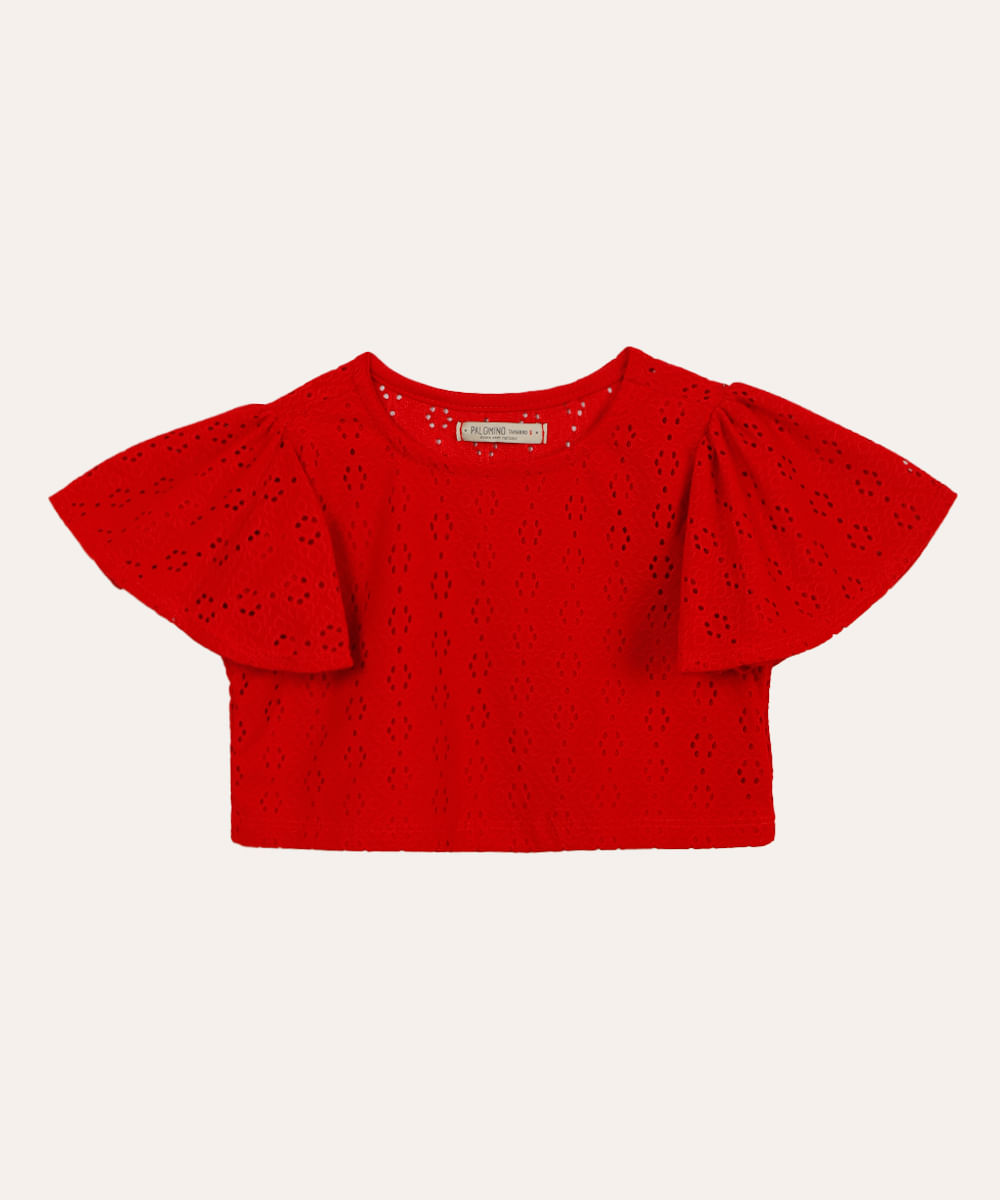 blusa de laise infantil com babado vermelha