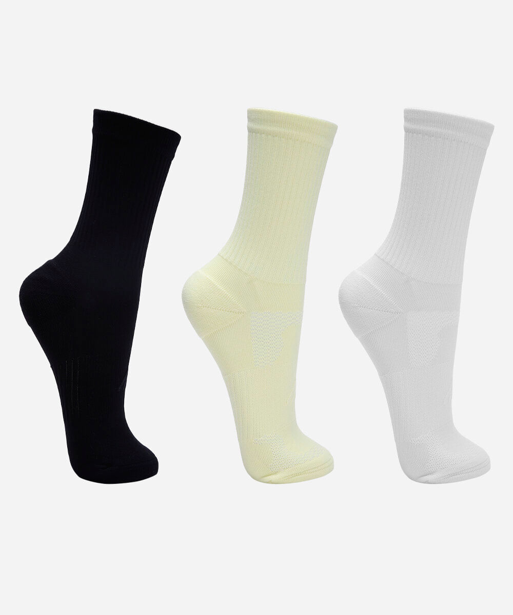 Meia Desenvolvida com alta tecnologia de fibra sintéticas com base principal em poliamida, possibilitando maior performance e desempenho nas práticas esportivas.
