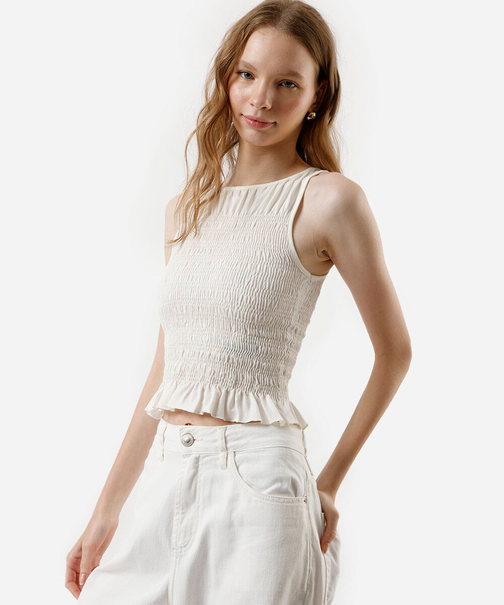 regata feminina de algodão franzida off white
