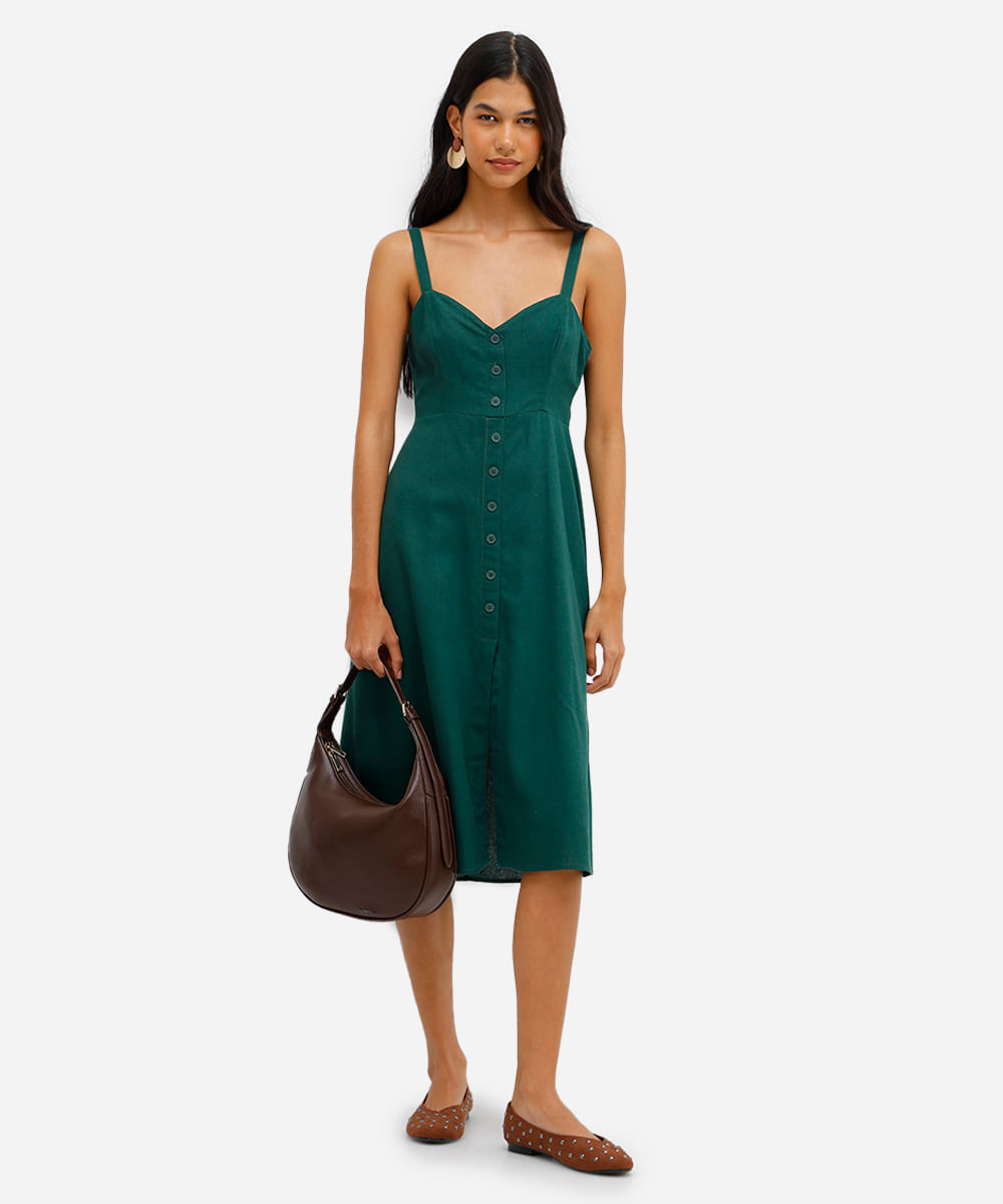 vestido midi evasê feminino com linho verde