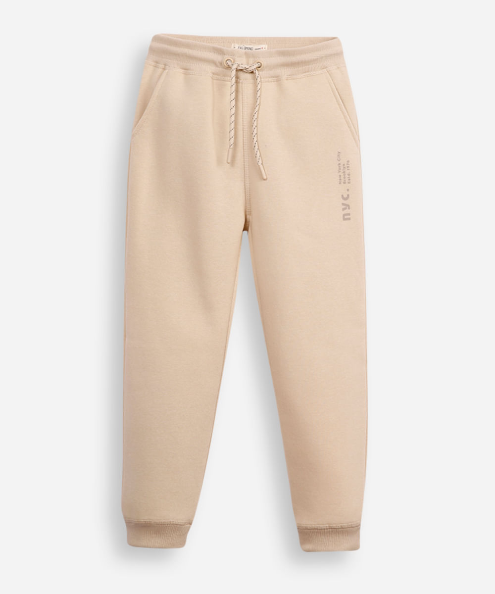 calça jogger infantil de moletom nyc bege