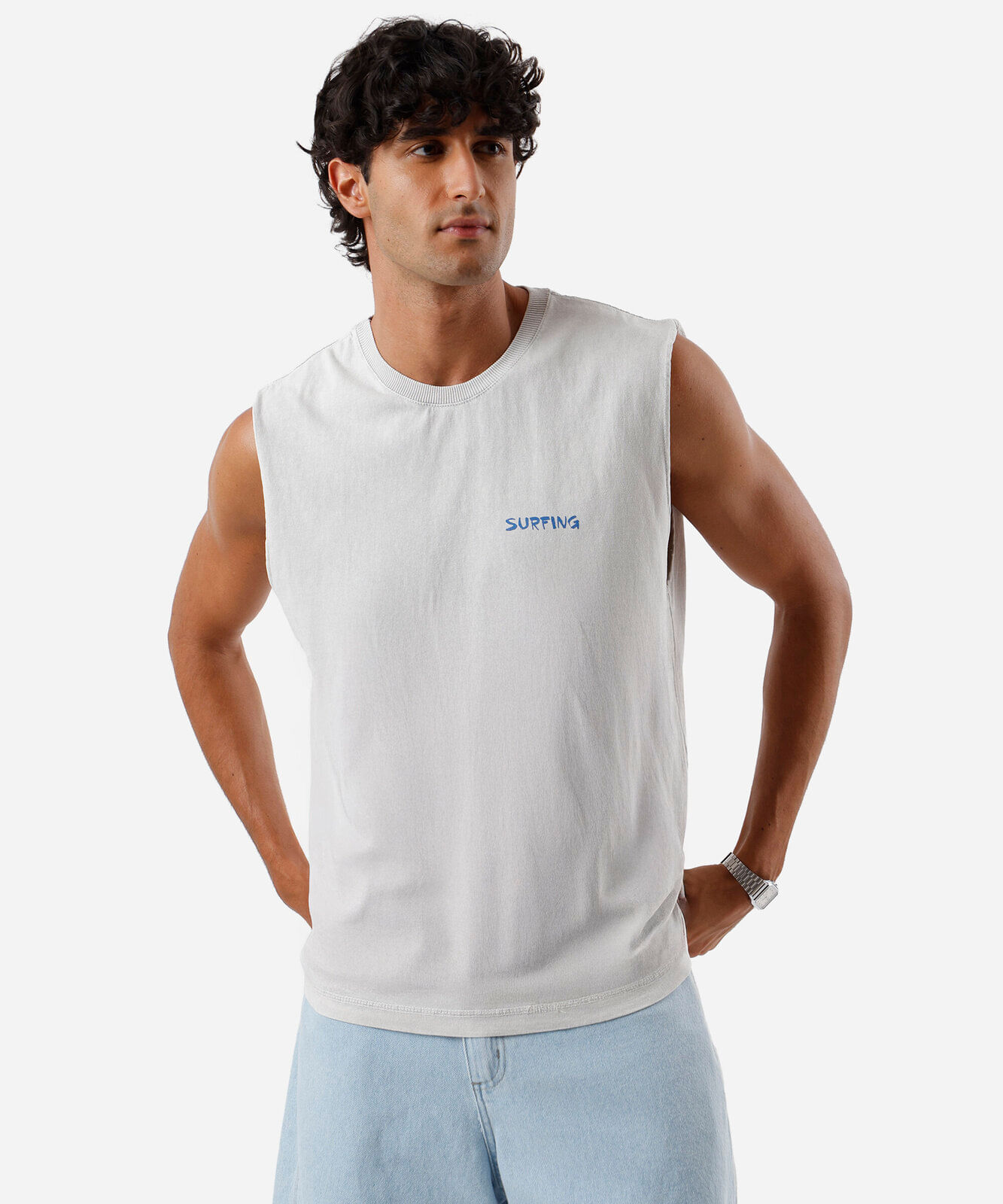 regata machão masculina de algodão estampada cinza