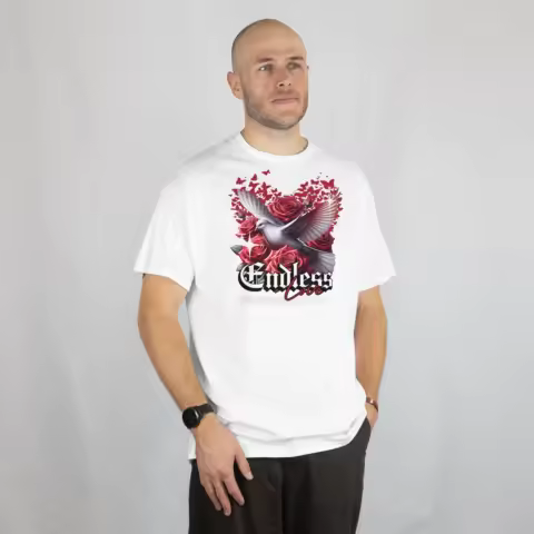 Camiseta Masculina Manga Curta em Algodão Estilosa Básica Endless Pomba Branca do P ao G1