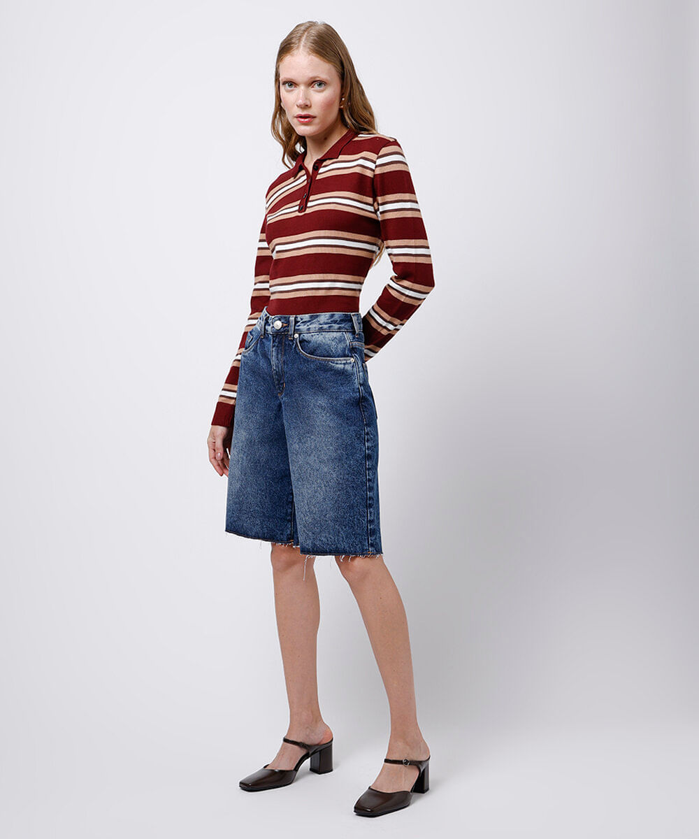 bermuda feminina jeans barra a fio mindset azul