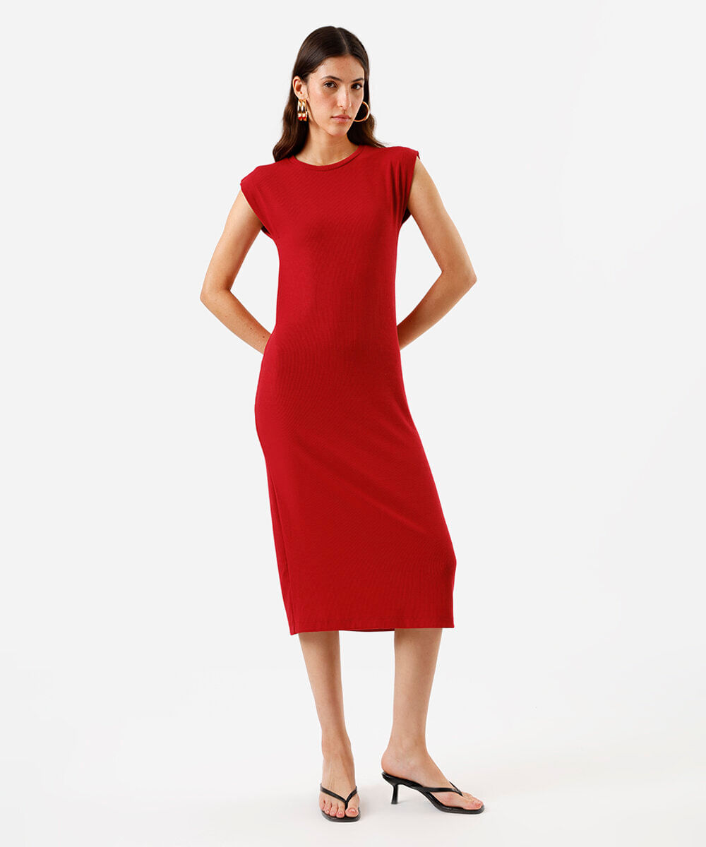 vestido midi muscle ribana de viscose vermelho
