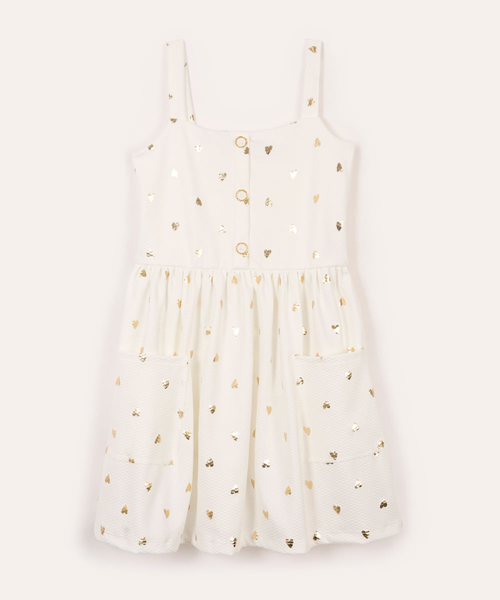 vestido infantil texturizado corações off white