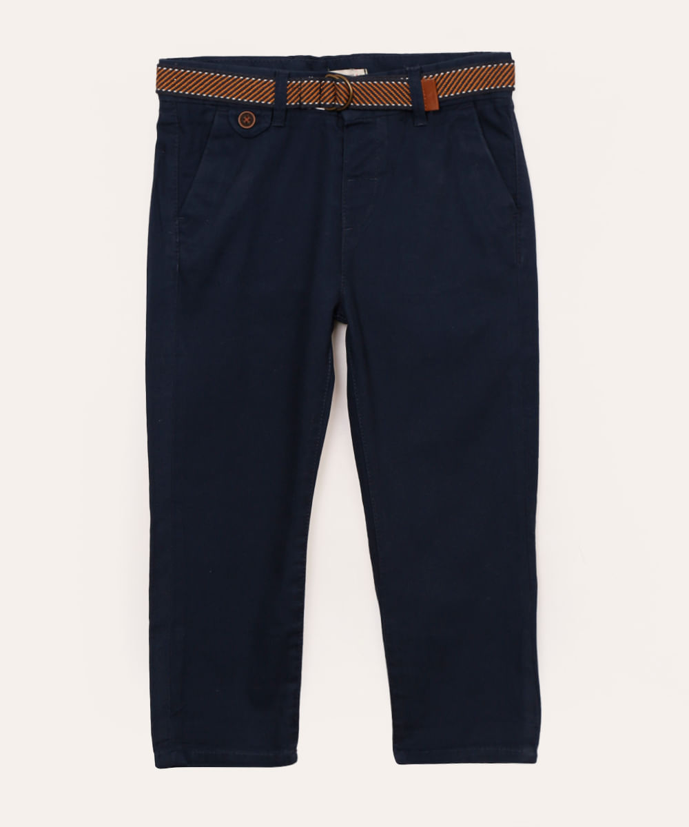 calça de sarja infantil com cinto azul