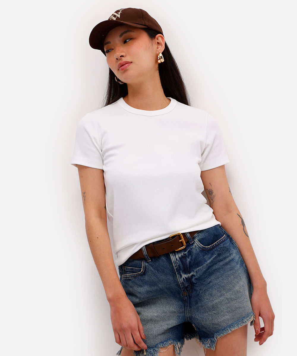 camiseta feminina de algodão peruano off white