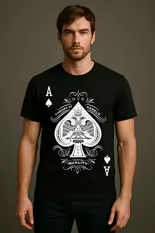 Camiseta Masculina Preta Estampa Naipe De Espadas Carta As Baralho Estilo Streetwear
