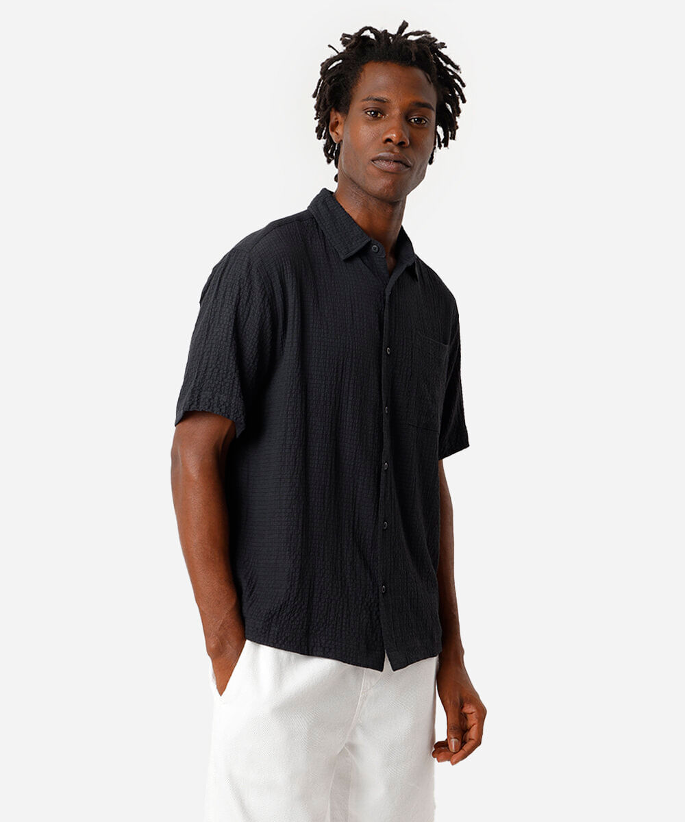 camisa masculina com bolso texturizada preta