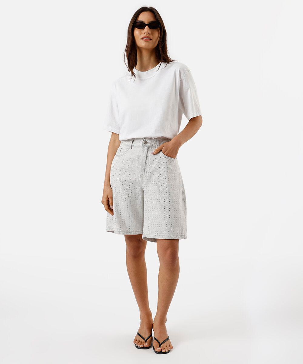 bermuda feminina de jeans com brilhos cinza