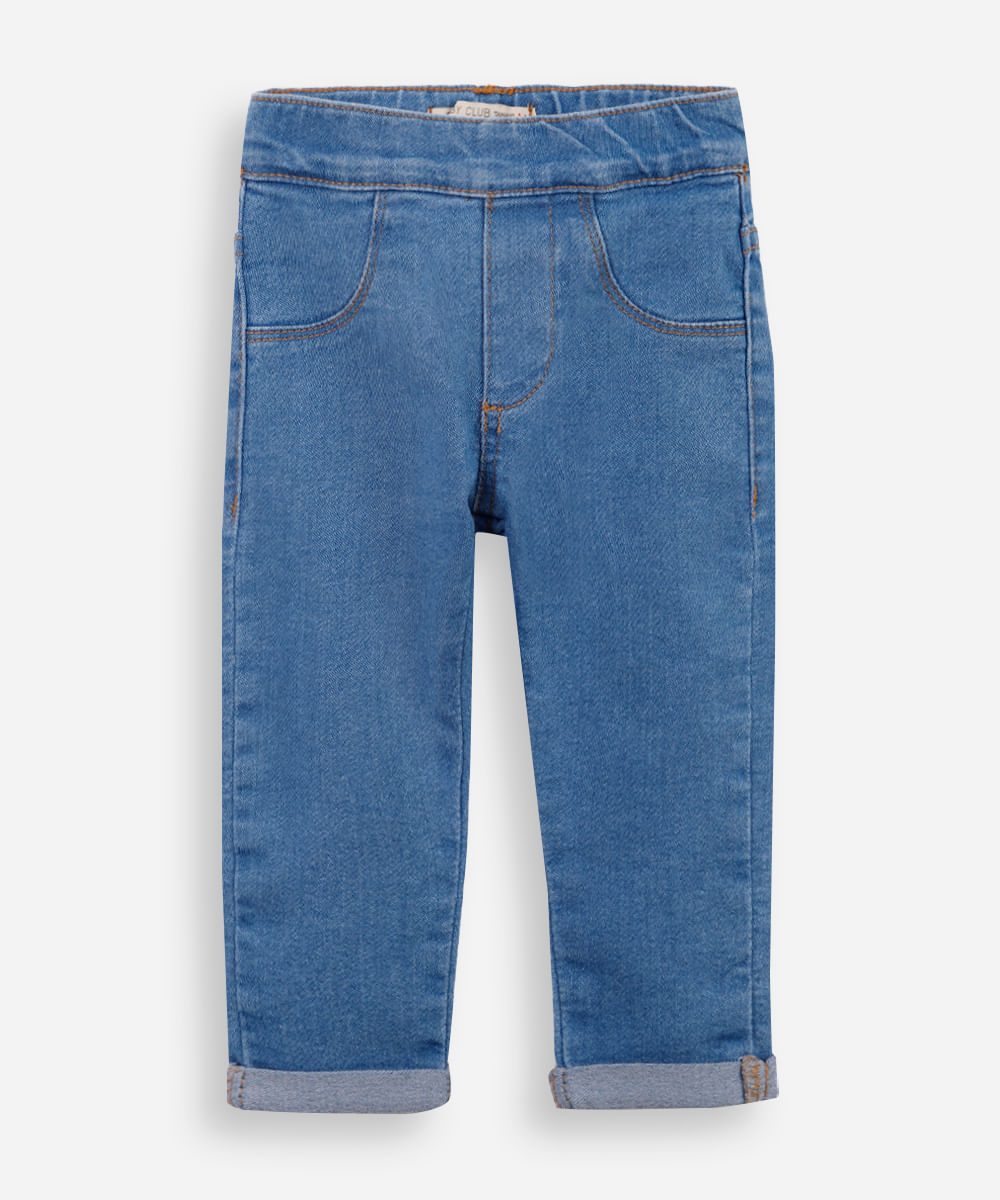 calça legging infantil jeans cós elástico azul