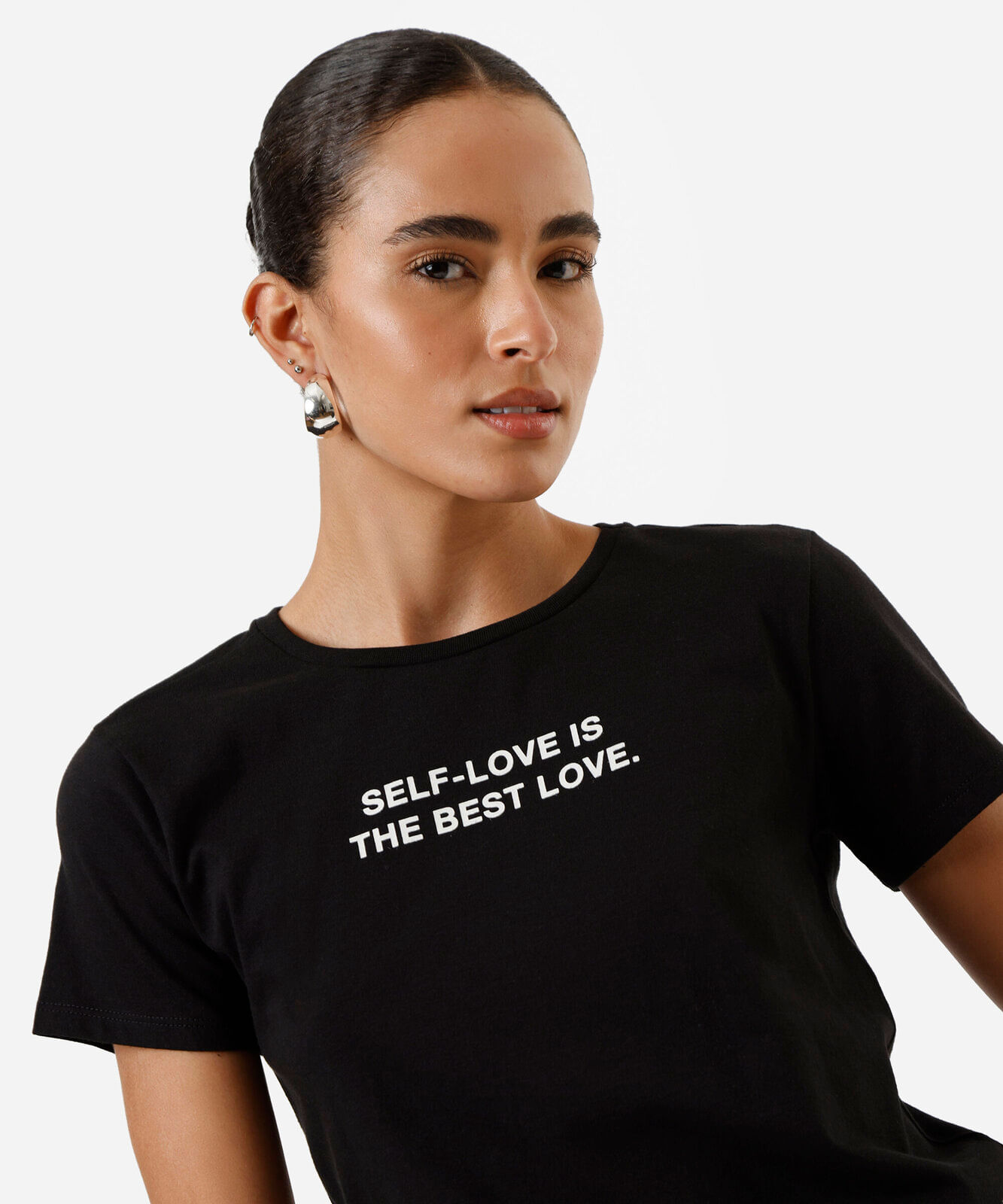 camiseta feminina de algodão self love preta