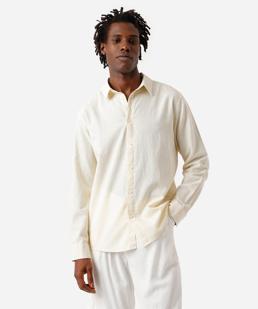 camisa masculina de linho e algodão manga longa amarela