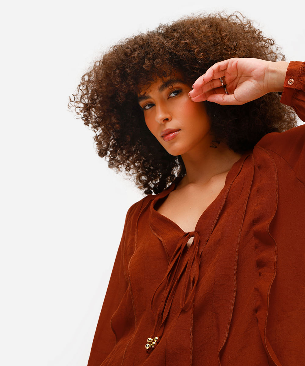 bata feminina com babados texturizada marrom
