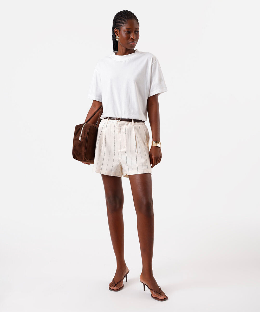 short de alfaiataria feminino com viscose risca de giz amarelo