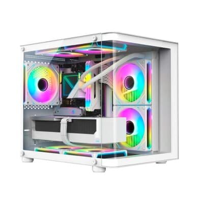 Gabinete Gamer HAYOM, Mini Tower, Lateral e Frontal em vidro, Branco - GB1799