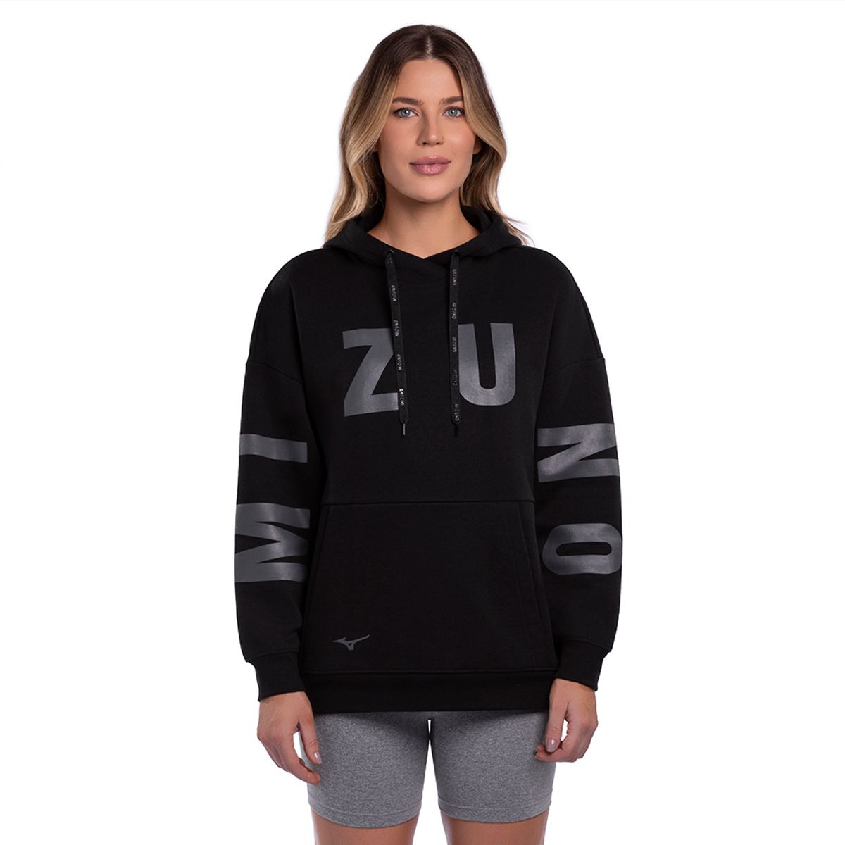 Moletom Canguru Sportstyle Feminino Mizuno  é fe... Maisito com um macio de tecido de moletom com fleece interno, proporcionando o melhor conforto térmico. Sua modelagem ampla com cava deslocada, possui fit oversided, transita livremente entre o treino e o lazer, sempre te mantendo protegida do frio. Possui capuz com ajuste de cordão e acabamento transpassado, além de bolsos estilo canguru que mantém suas mãos quentinhas além de guardar pequenos objetos. A assinatura da peça fica por conta de uma brincadeira com o Lettering da marca em silk ton sur ton. Menos