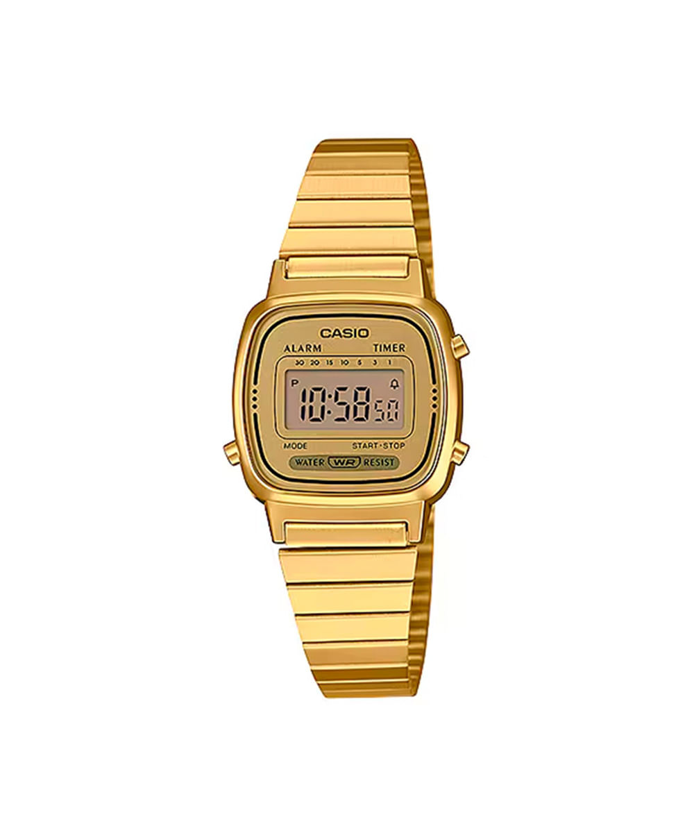 relógio feminino casio digital la670wga 9df dourado