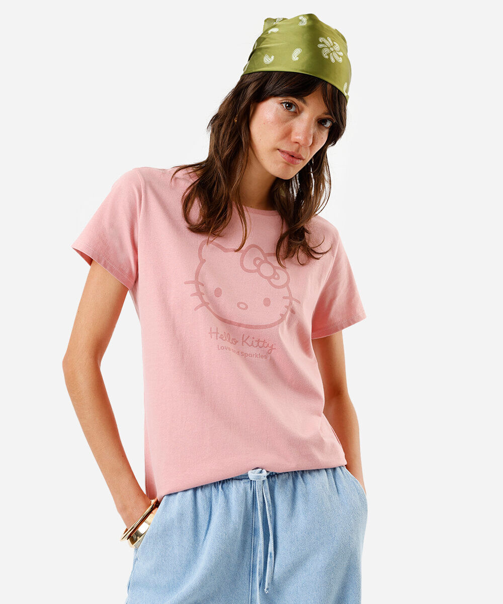 camiseta feminina manga curta hello kitty rosa