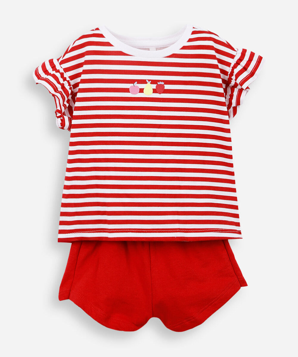 conjunto infantil de algodão listrado vermelho