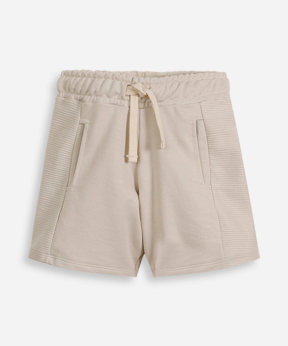 bermuda infantil de moletom texturizada com bolsos bege