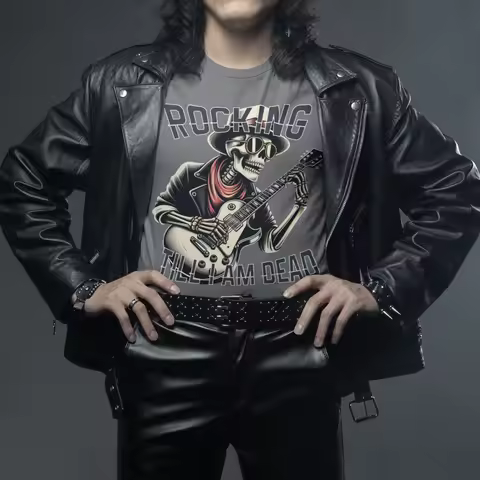 Camiseta Masculina GuGi Rocking Esqueleto Rockeiro Caveira Tocando Guitarra