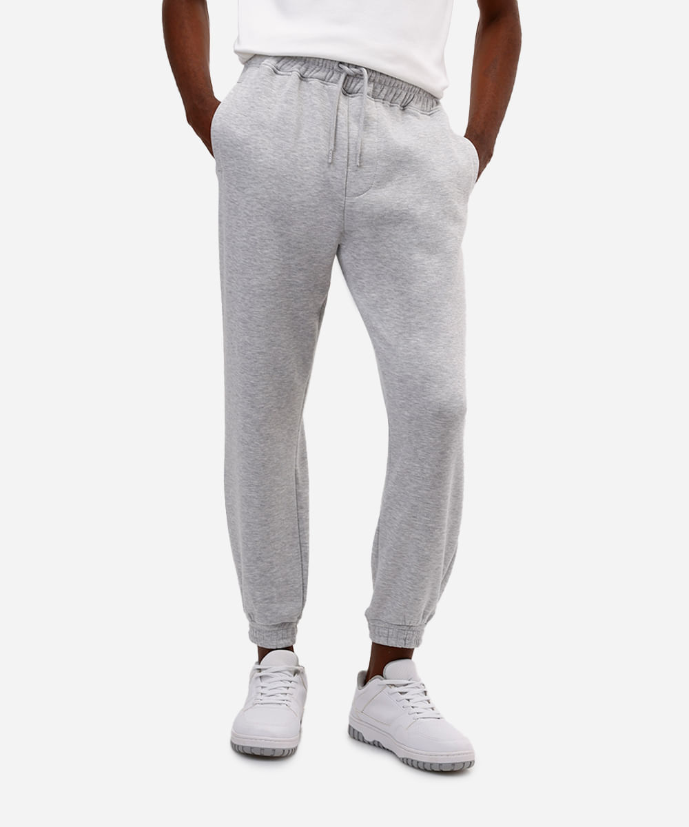 calça básica jogger masculina de moletom felpado cinza