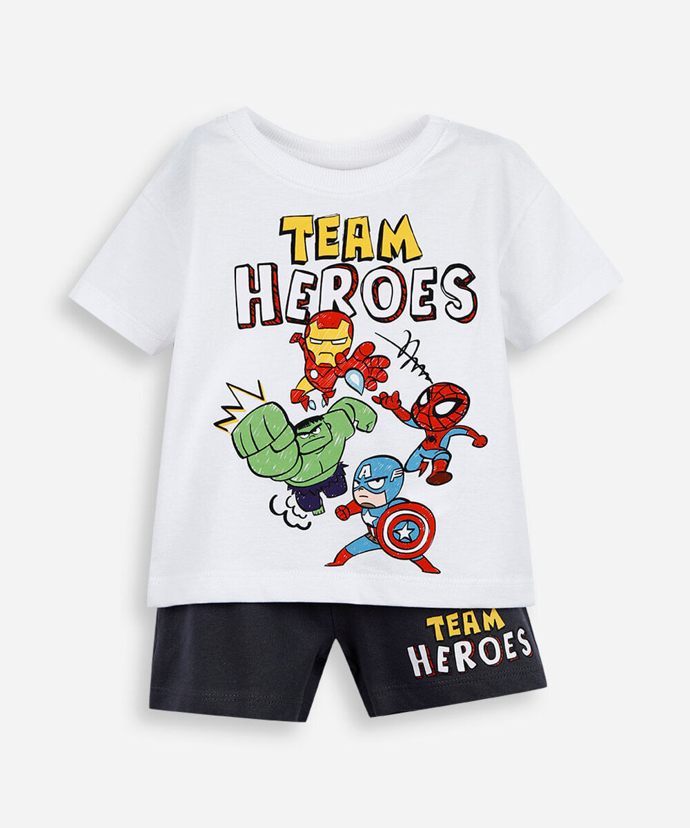 conjunto infantil de algodão marvel baby off white